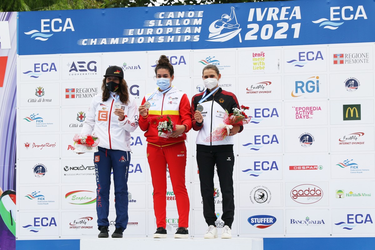 The new European Champion in women's canoe Miren Lazkano capsized before the third gate, but that did not throw her out of the game as she continued with strong pace to win her first individual medal at senior European Championships, and her first gold medal. So far, she won a silver and bronze medal in team events. Paddler from San Sebastian was 0.36 seconds faster than Czech Tereza Fišerova, while German Elena Apel took the bronze medal.